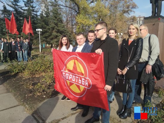 В Луганском сквере Молодой Гвардии вчера, 29 октября, прошел митинг Союза коммунистов Луганщины и Объединения «Боротьба» в честь 100-летия создания Всесоюзного ленинского коммунистического союза молодёжи