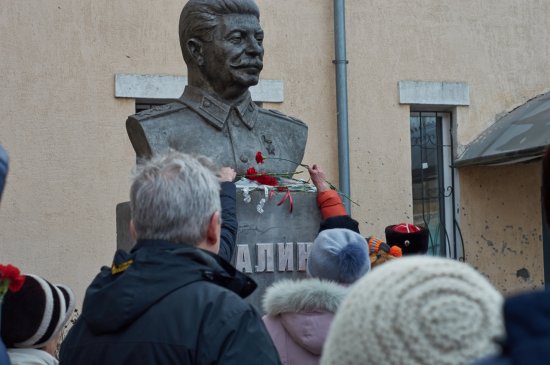 Коммунисты Луганска провели торжественное собрание и возложили цветы к памятнику лидеру СССР Иосифу Сталину