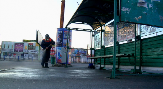 Сотрудники городской аварийно-спасательной службы в связи с возобновлением работы общественного транспорта с 13 мая продолжили обработку специальным дезинфицирующим раствором салонов маршрутных такси и остановочных павильонов