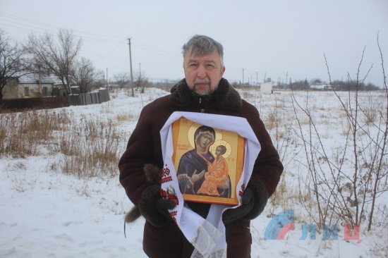 Луганский иконописец, народный художник Луганщины Евгений Ковалев передал в дар храму Тихвинской иконы Божией Матери поселка Сабовка Славяносербского района именную икону