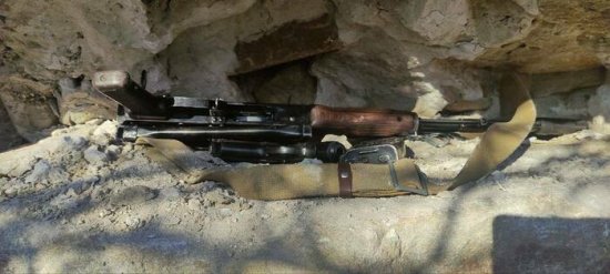 Работники прокуратуры Беловодского района и местного отдела внутренних дел изъяли из тайника вблизи поселка городского типа Беловодск автомат, пистолет, гранату и другие боеприпасы