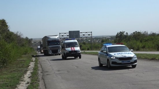 Автомобили 190-го конвоя МЧС России доставили в Луганск продукты питания и учебную литературу