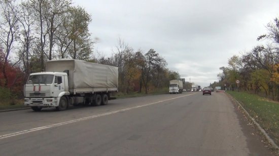 Автомобили очередного конвоя МЧС России с гуманитарной помощью прибыли в столицу ЛНР