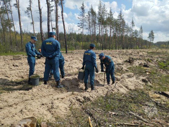 Сотрудники Старобельского пожарно-спасательного отряда высадили около трех тысяч саженцев сосны на территории местного лесоохотничьего хозяйства