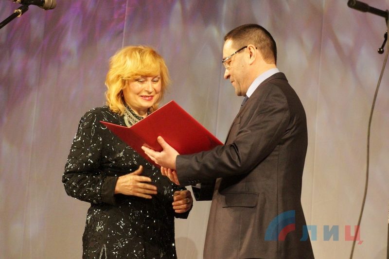 О присуждении почетного звания «Заслуженный деятель искусств ЛНР» преподавателю кафедры народных инструментов ЛГАКИ Ирине Золотаревой и почетного звания «Заслуженный художник ЛНР» доценту кафедры станковой живописи академии Александру Коденко на концерте-шоу «Завтра начинается сегодня» в луганском Дворце культуры имени Ленина сообщил заместитель руководителя администрации главы ЛНР Сергей Гончаров.