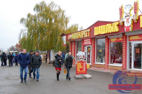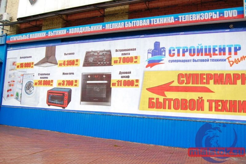 По улице Оборонной магазин «Стройцентр». Как утверждает реклама, самые выгодные цены на бытовую технику в ЛНР