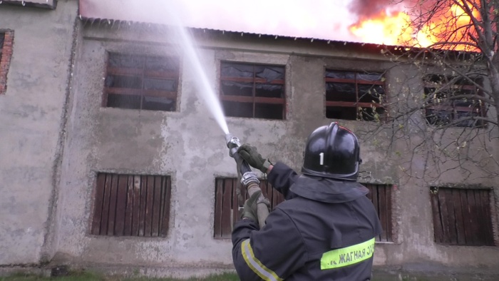 Отмечается, что жители Каменнобродского района сообщили в службу 101 о том, что на улице Артема горит крыша заброшенного здания бывшего Дома офицеров.