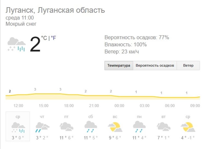 Отметим, что о данном погодном явлении жители Луганска начали сообщать вчера вечером, 24 октября, в социальных сетях. Также в прогнозе погоды на сегодняшний день отмечено, что луганчан ожидает мокрый снег.