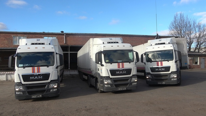 Нынешний конвой российских спасателей, состоящий из шести автомобилей, доставил в Луганск продукты питания (консервы рыбные и мясные) и медикаменты общим весом 95 тонн.