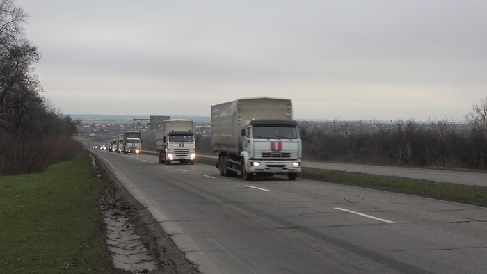 Нынешний конвой российских спасателей, состоящий из 22 автомобилей, доставил в Луганск бутилированную воду (20 машин, по 100 тонн в каждой) и медицинские изделия (две машины).