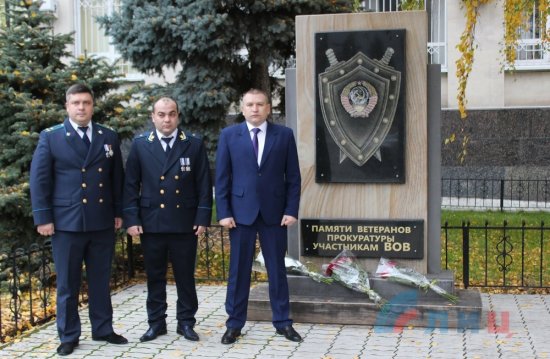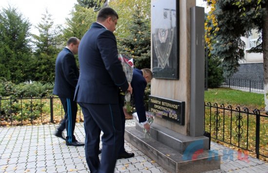 В честь Дня работника прокуратуры, который отмечается в ЛНР 7 ноября, представители руководства ведомства Республики возложили цветы к памятнику ветеранам прокуратуры, участвовавшим в Великой Отечественной войне.