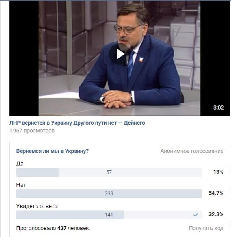 Отметим, что данный опрос был сделан после заявления и.о. министра иностранных дел ЛНР Владислава Дейнего о том, что территории ЛНР И ДНР должны иметь полную самостоятельность в рамках Украины.