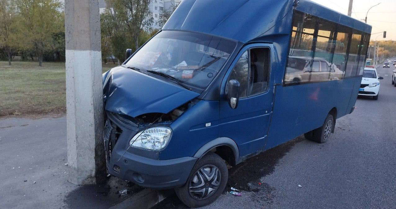В Луганске маршрутчик врезался в столб: есть пострадавшие