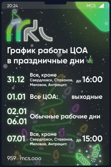 Республиканский оператор МКС обнародовал график работы Центров обслуживания абонентов в Новогодние и Рождественские праздники.