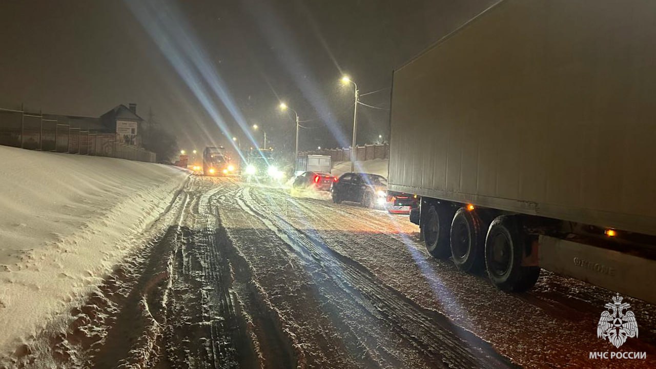 Спасатели помоги выбраться из снежных заносов 11-ти грузовикам в Луганске