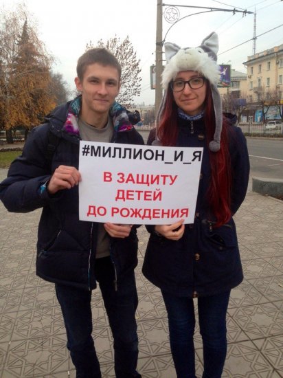 Жители Луганска не остались в стороне и поддержали акцию, сфотографировавшись с лозунгом «В защиту детей до рождения».