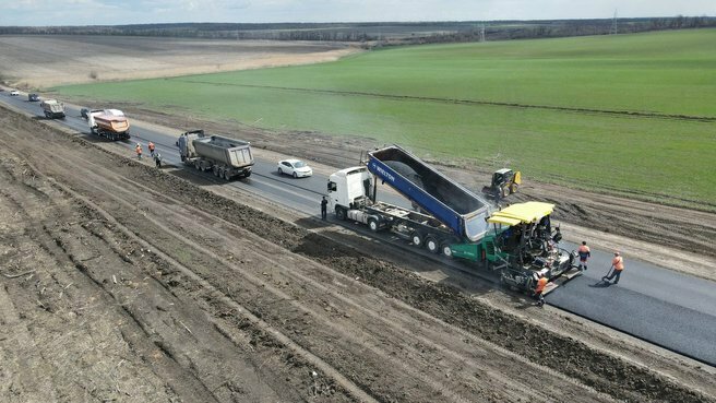 Дорожники приступили к укладке верхнего слоя асфальта на автодороге федерального значения от Луганска до пункта пропуска в Изварино.
