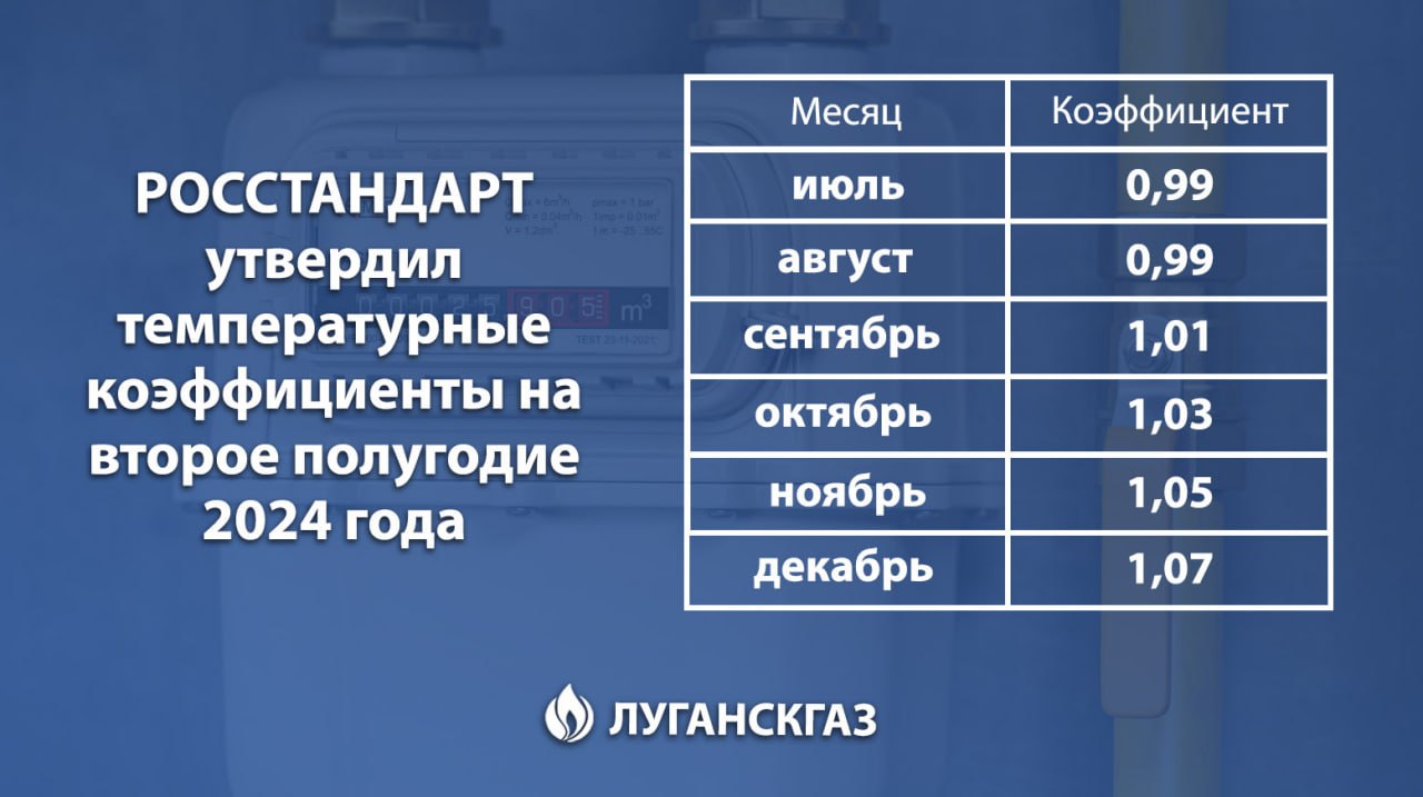 Росстандарт установил новые температурные коэффициенты для счетчиков газа в ЛНР