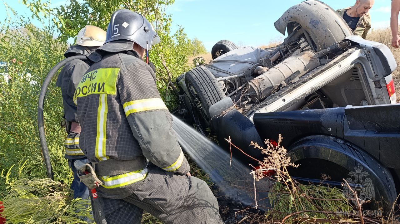 На место происшествия оперативно выехали силы и средства 5 пожарно-спасательных частей. ️По прибытии на место ДТП было установлено, что в машине находятся 2-е пострадавших. С помощью специнструмента спасатели отрезали крышу, провели деблокирование пострадавших и передали их медикам. Они госпитализированы в больницу.
