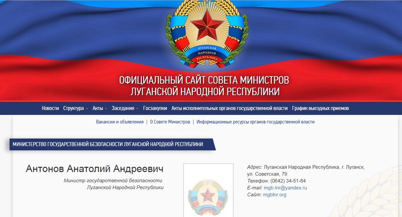 Анатолий Антонов возглавил Министерство государственной безопасности Луганской Народной Республики.