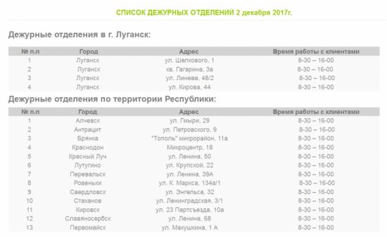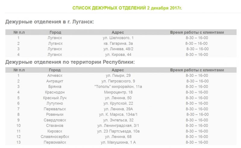 Госбанк Луганской Народной Республики опубликовал адреса отделений, которые будут работать в субботу, 2 декабря.