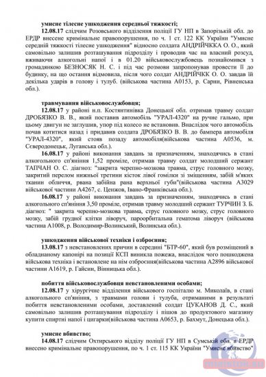 По словам Хижняка, во многих случаях смерть украинских военнослужащих от передозировок алкоголя оформляли в документации как смерть от естественных причин или как от сердечной недостаточности, и таким образом скрывали факты.
