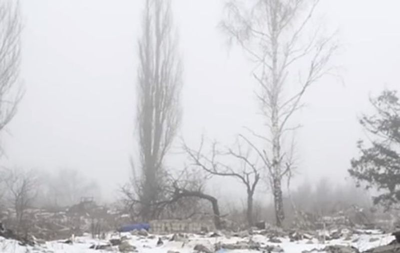 Судя по видео, строение аэропорта не уцелело, частично видны бетонные опоры с перекрытиями. Также вокруг разбросаны камни, видны только фрагменты строений и снарядов вокруг.