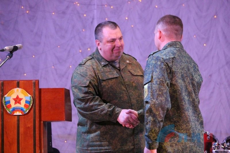 «Дорогие сослуживцы, от лица командования Народной милиции и от себя лично поздравляю вас с профессиональным праздником – Днем защитника Отечества. 23 февраля – годовщина создания Красной Армии, той самой, которой наши прадеды и деды отдавали жизни за свободное и счастливое будущее нашего народа. Они верили – их дело правое, и эта вера придавала им силы. Придает эта вера силы русским воинам и по сей день. Народ Луганской Народной Республики может спать спокойно, зная, что на страже границ молодого государства стоит непоколебимая сила в лице Народной милиции. Поэтому сегодня всем вам хочу сказать большое спасибо за вашу ратную службу, за смелость и самоотдачу, за верность долгу своему Отечеству. Также хочу пожелать вам крепкого здоровья, благополучия вам и вашим семьям, и самое главное – скорейшего мира на нашей земле», - пожелал полковник Народной милиции Михаил Филипоненко.
