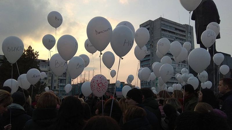 Луганчане выпустили в небо белые шары с именами погибших в Кемерово