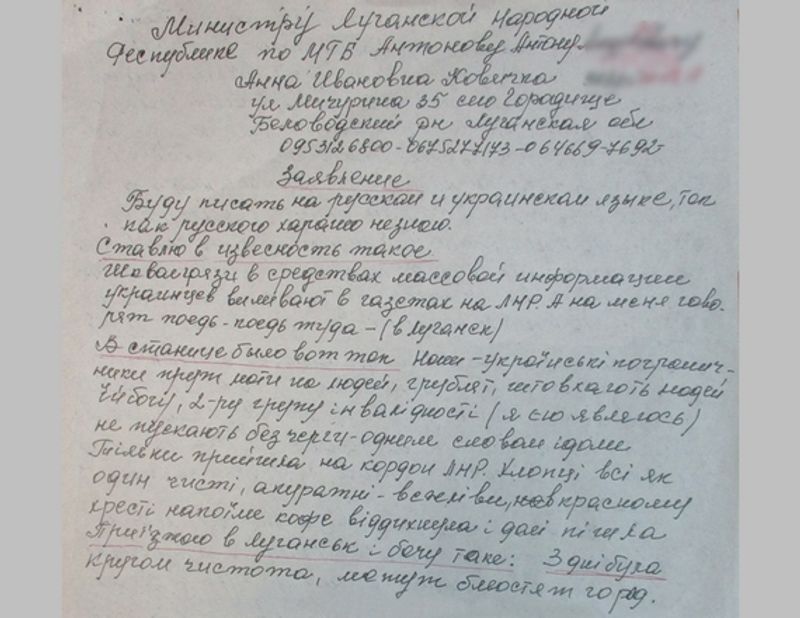 Однако, убедившись в несоответствии украинской пропаганды и реальности, Ковичко явилась с повинной в МГБ ЛНР и добровольно дала письменные показания о методах работы СБУ, тотальной коррупции в силовых структурах и общей обстановке в Беловодском районе.