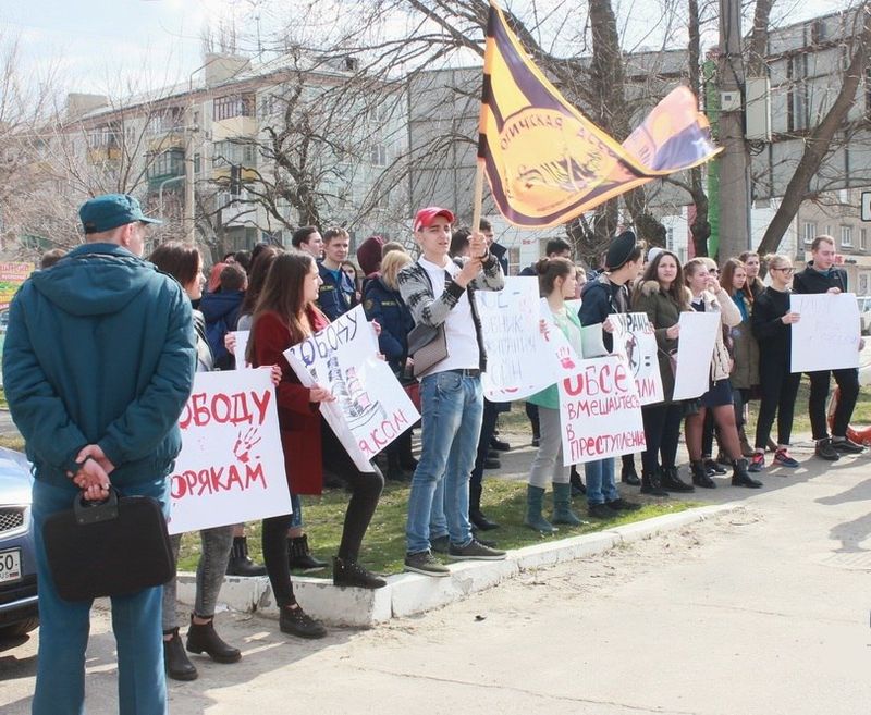 Вчера, 5 апреля, у здания СММ ОБСЕ в Луганске молодёжные активисты провели митинг в поддержку экипажа русского судна «Норд», который был захвачен украинской погранслужбой в нейтральных водах Азовского моря 26 марта.