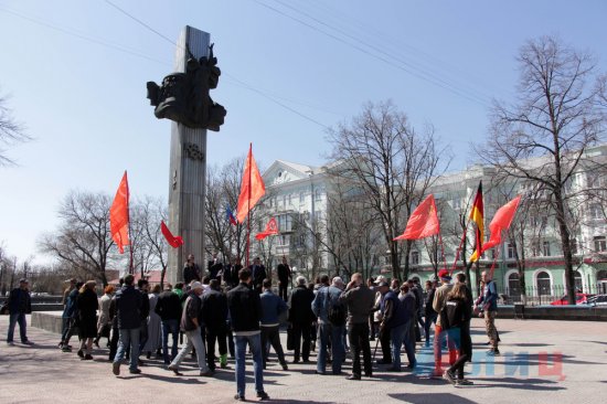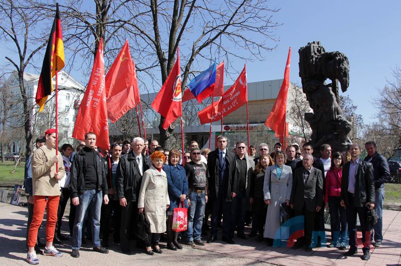 Первый секретарь «Союза коммунистов Луганщины» Игорь Гуменюк отметил, что подобные акции против действий официального Киева в Донбассе сегодня проходят еще в 10 городах Европейского союза и России.