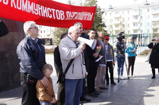 Вчера, 22 апреля, коммунисты ЛНР провели митинг и возложили цветы к памятнику основателя Советского государства Владимира Ленина.