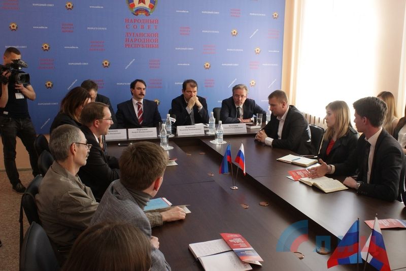 Во встрече приняли участие представитель ЛНР в политической подгруппе Контактной группы на переговорах в Минске, кандидат исторических наук Родион Мирошник, а также гости из Российской Федерации – обозреватель Российского агентства международной информации «РИА Новости» Владимир Корнилов, кандидат исторических наук, старший ученый сотрудник Института российской истории Российской академии наук (РАН) Андрей Марчуков, президент Фонда развития институтов гражданского общества «Народная дипломатия» Алексей Кочетков.