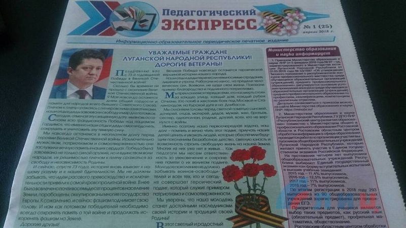 В Луганской Народной Республике вышел первый номер газеты для работников образования «Педагогический экспресс».