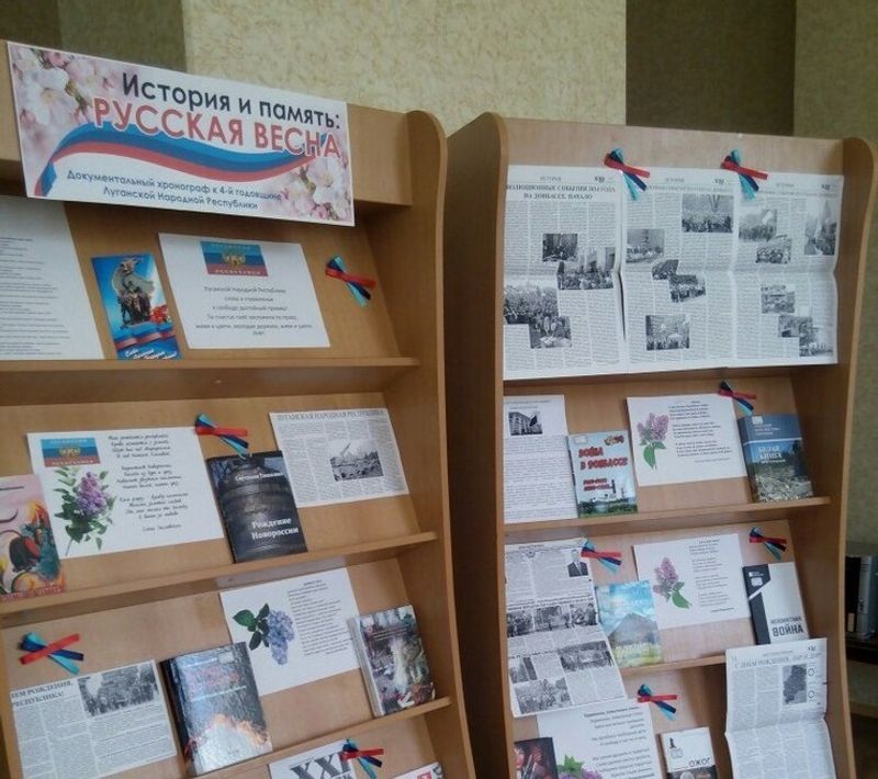 Отдел краеведческой информации Луганской республиканской универсальной научной библиотеки имени Максима Горького представил книжную выставку «История и память: Русская весна», посвященную Дню Республики.
