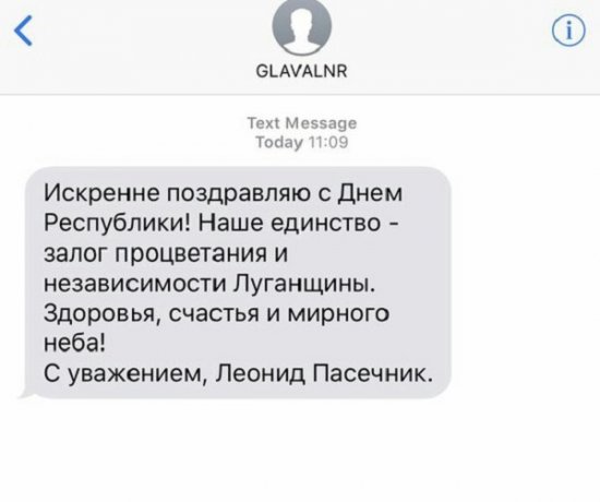 Сегодня, 12 мая, и.о. главы ЛНР Леонид Пасечник поздравил сограждан с Днем Республики по смс.