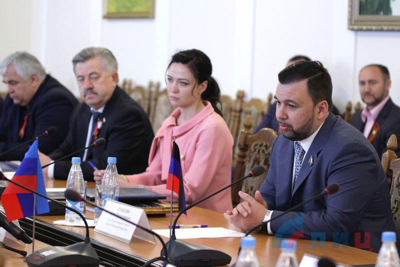 И.о. главы ЛНР Леонид Пасечник встретился с прибывшими в Луганск на празднование Дня Республики делегациями из России и ДНР.