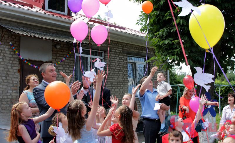Для гостей воспитанники детского дома подготовили танцевальные и песенные номера, а в конце праздника дети вместе с Пасечником запустили в небо воздушные шарики с прикрепленными к ним бумажными голубями, на которых дети написали свои мечты.