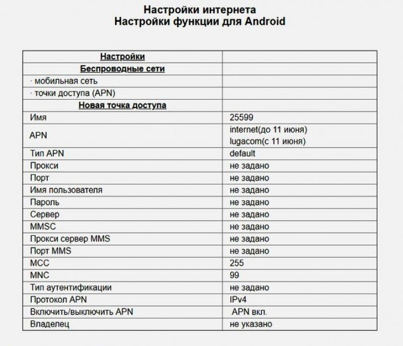 В компании пояснили, что для доступа к мобильному интернету с 11 июня в графе идентификатора сети пакетной передачи данных (APN) необходимо изменить Internet на lugacom.