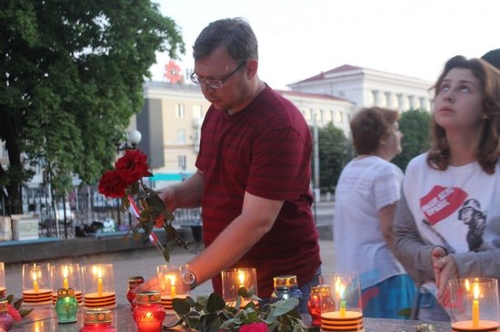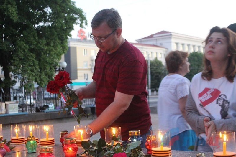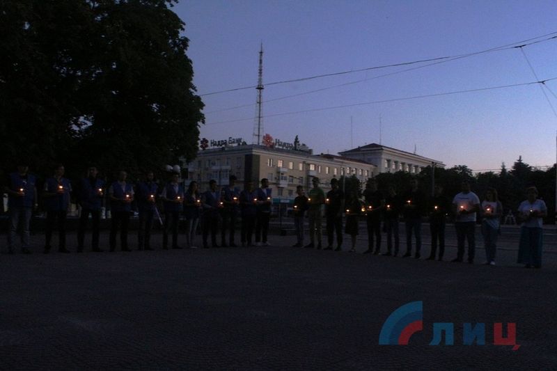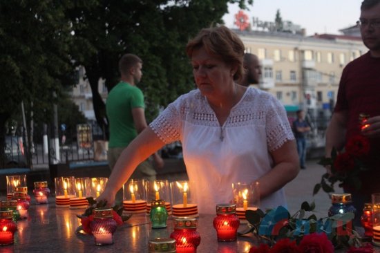 Луганчане провели в центре города у Пилона Славы акцию «Свеча памяти», приуроченную к годовщине начала Великой Отечественной войны.