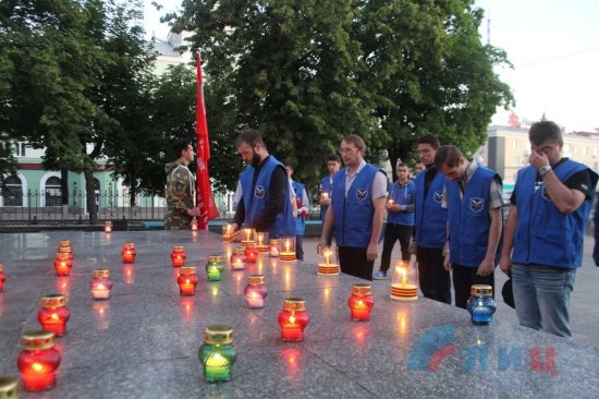 Отмечается, что в четыре утра активисты общественного патриотического объединения «Булат» и жители города, в том числе председатель Народного Совета ЛНР Денис Мирошниченко и министр культуры, спорта и молодежи ЛНР Дмитрий Сидоров, зажгли свечи в память о погибших в самой кровопролитной войне прошлого столетия, начавшейся 77 лет назад.