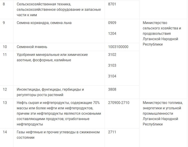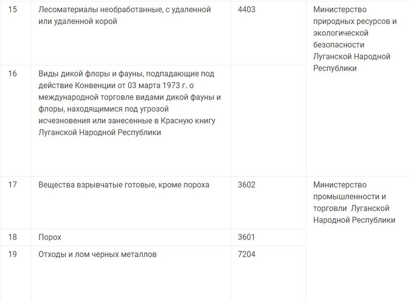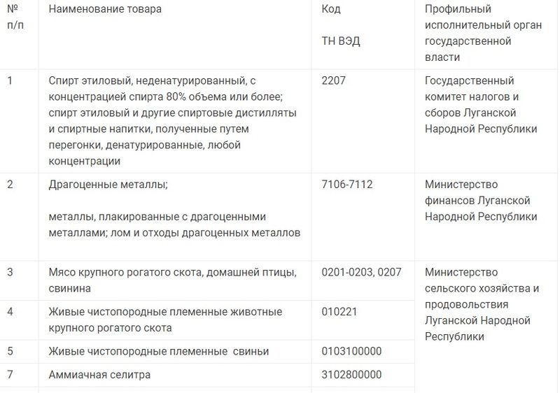 Перечень товаров, вывозить которые с территории Луганской Народной Республики (кроме транзита) можно будет только на основании разового разрешения: