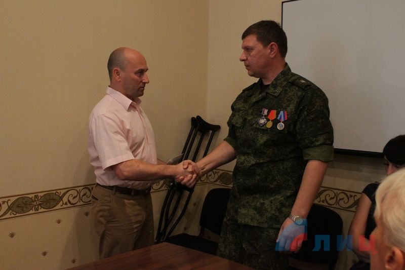 Делегаты из России передали по 100 тысяч рублей семьям восьми погибших сотрудников внутренних дел ЛНР, а также оказали финансовую помощь для приобретения протеза военнослужащему Республики, который потерял ногу в боях за Донбасс.