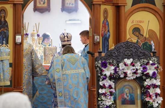 Возглавил праздничное богослужение в честь престольного праздника верхнего, главного придела столичного храма, митрополит Луганский и Алчевский Митрофан в сослужении с архиепископом Ровеньковской епархии Пантелеимоном.