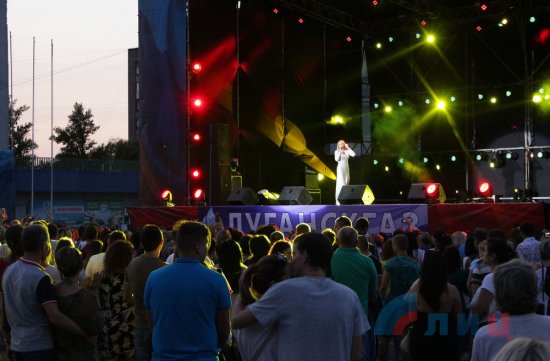 Известные российские исполнители Влад Соколовский, Юлия Михальчик и Дмитрий Колдун выступили в Луганске на Театральной площади в преддверии Дня знаний и Дня работника газовой и нефтяной промышленности.