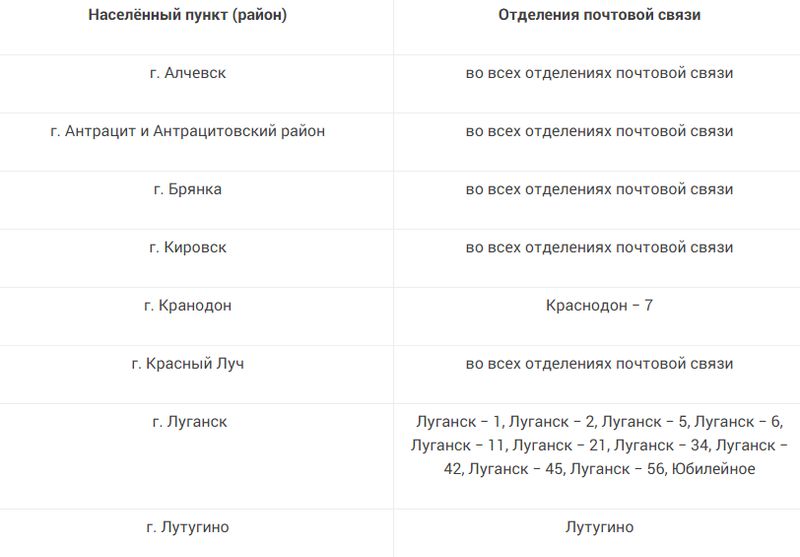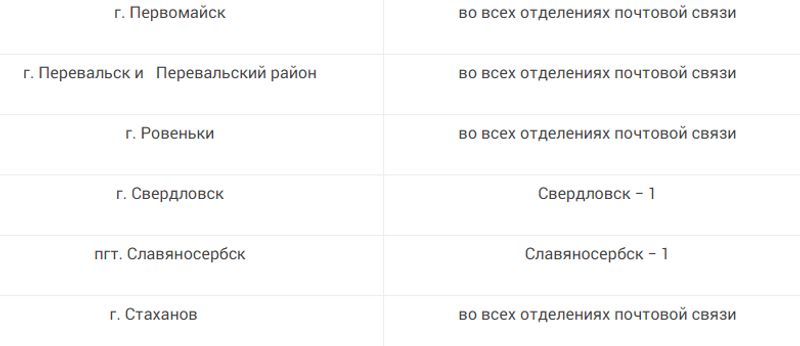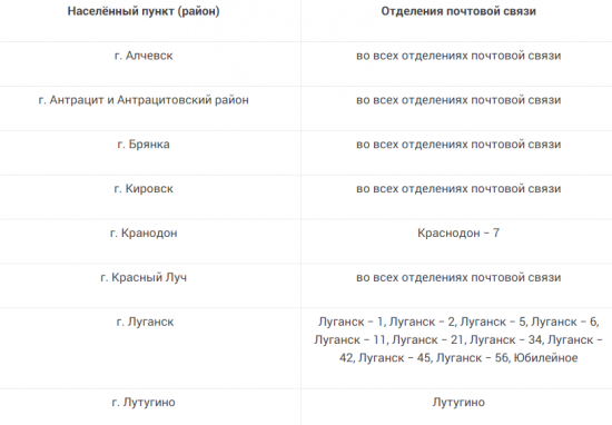 Соответственно, при оформлении почтового перевода «На предъявителя» достаточно указать фамилию, имя, отчество получателя и отправителя почтового перевода. Данная услуга предоставляется на территории ЛНР в следующих отделениях почтовой связи: