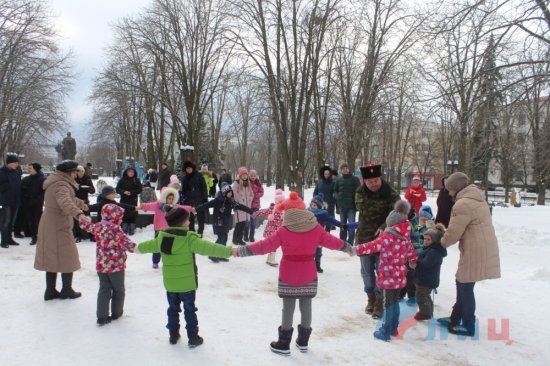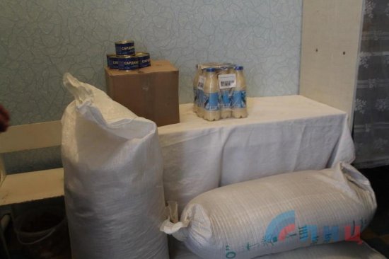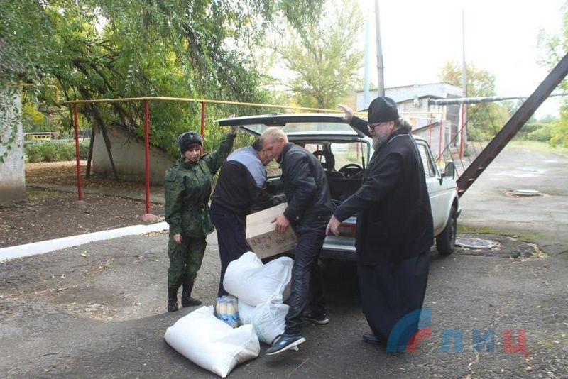 Продукты передали войсковой священник Народной милиции ЛНР, настоятель луганского храма-часовни во имя святой равноапостольной княгини Ольги игумен Пимен и официальный представитель Народной милиции по гуманитарным вопросам Юлия Луганская.