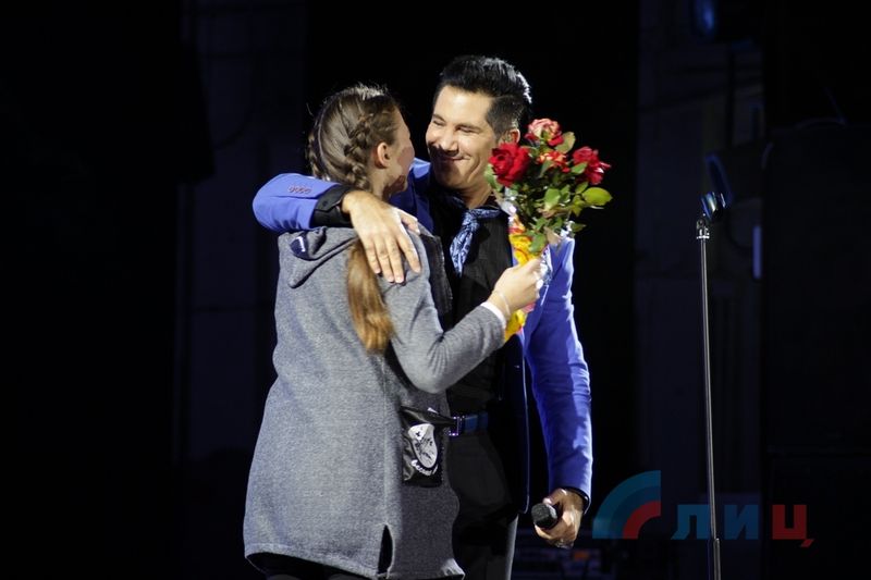 Известные российские эстрадные исполнители Авраам Руссо и Елена Терлеева выступили в луганском Дворце культуры имени Ленина с праздничным концертом, посвященным Дню работника образования.