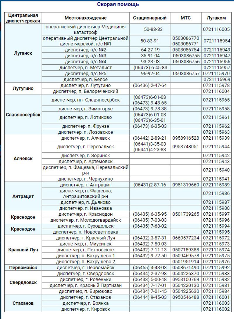 | Луганск | оперативный диспетчер Медицины катастроф | 50-83-33 | 0721116005 | |